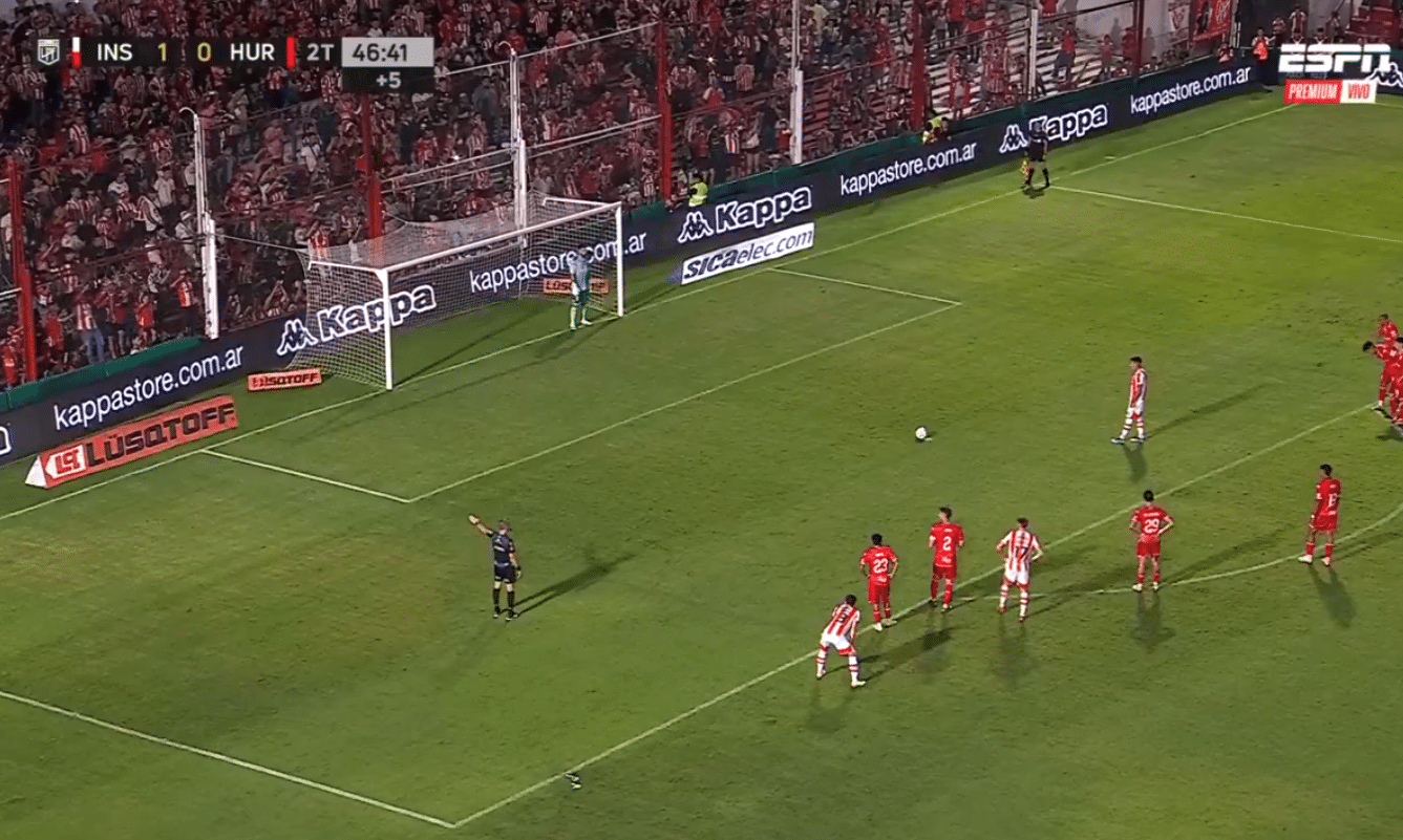 Una vez que el jugador Instituto se acercó al balón, el arquero volvió al medio y después se tiró hacia su izquierda. El remate (y gol) fue a su palo derecho.