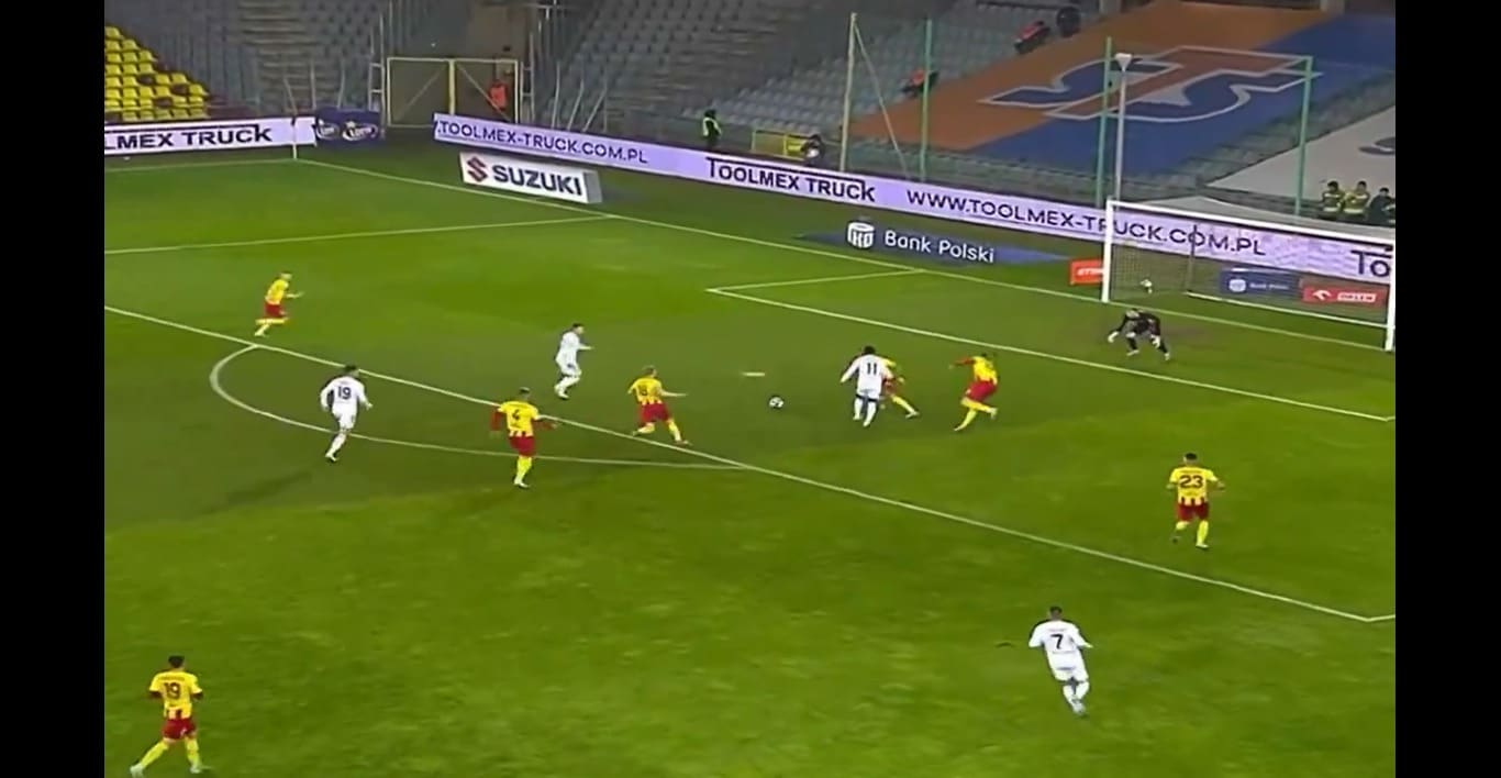 El futbolista de 23 años de edad aportó con una asistencia en el encuentro que su equipo visita al Korona Kielce.