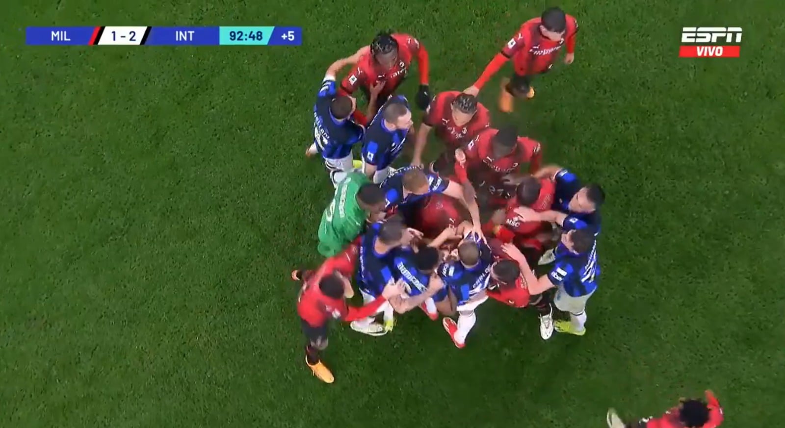 Theo Hernández (Milan), Denzel Dumfries (Inter) y Davide Calabria (Milan) fueron los elementos que recibieron tarjeta roja.