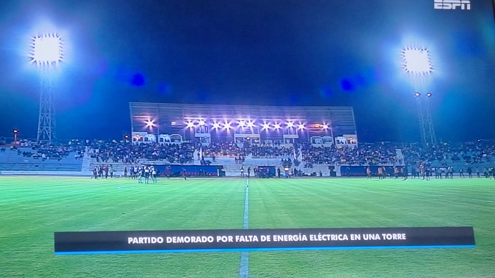Esto debido a que el partido, antes de iniciar el segundo tiempo tuvo que ser demorado por falta de energía en una torre de luz.