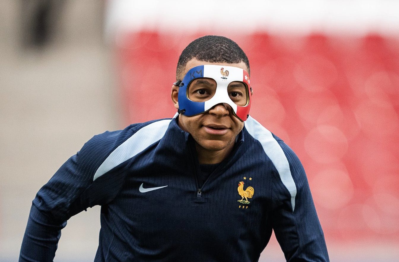 Kylian Mbappé ya tiene máscara. Tras sufrir una fractura de nariz en el debut de Francia en la Eurocopa, ante Austria, el delantero del Real Madrid ya tiene la protección que necesita para poder seguir jugando en el torneo. Mbappé ha aparecido en el entrenamiento previo al duelo ante Países Bajos con una máscara con los colores de la bandera francesa, sus iniciales, el gallo y las dos estrellas.
