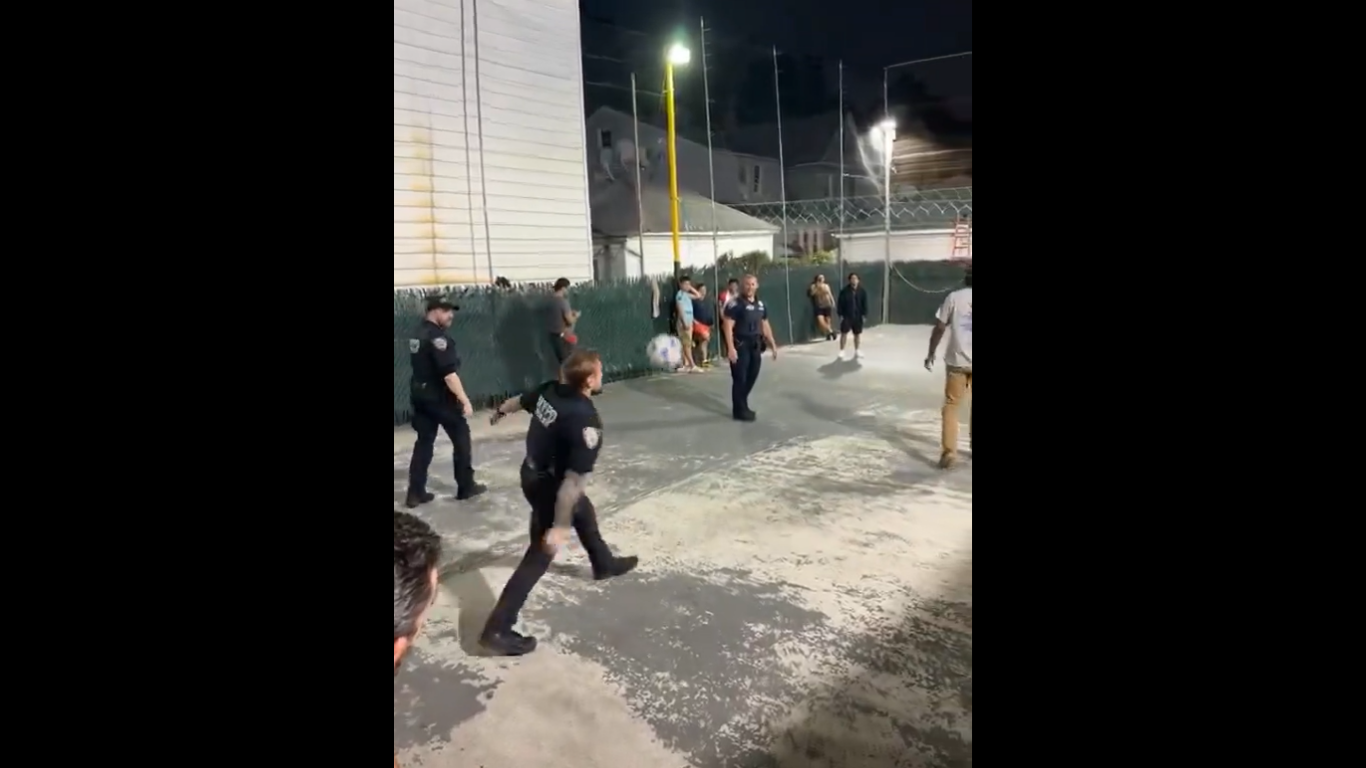 En las últimas horas se ha viralizado un video en redes sociales donde se observan a Policías de New York (Estados Unidos) jugando Ecuavóley.