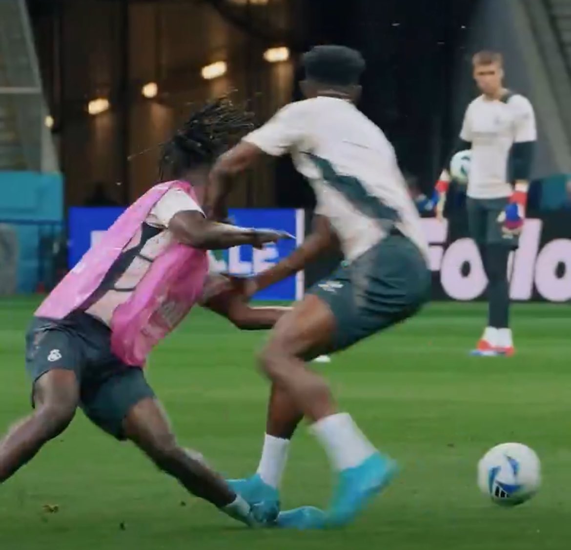 Camavinga, rodeado de sus compañeros, fue atendido sobre el césped. Después de varios minutos en el suelo, se levantó y quedó claro que no iba seguir en el entrenamiento. El nuevo 6 del Madrid se encaminó a la caseta sin dar síntomas de que la lesión fuese serie. Llegó a línea de banda sin apenas cojear, pero lo que sí iba era muy enfadado. Antes de meterse en el túnel de vestuarios se quitó el peto y lo lanzó al suelo.