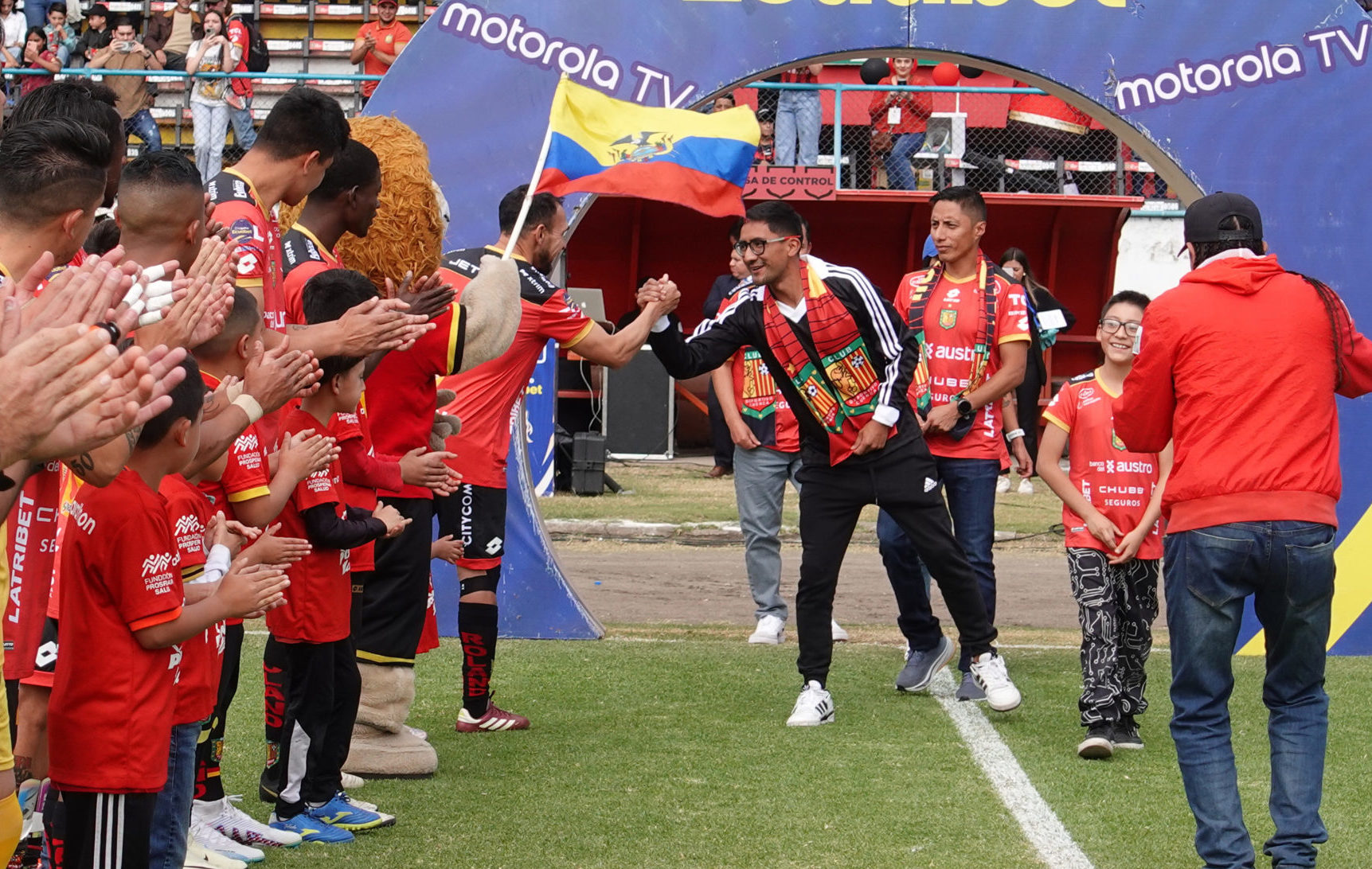 El doble medallista en marcha, en estos recientes Juegos Olímpicos, fue recibido con un pasillo de honor lleno de aplausos, por parte de los futbolistas, el cuerpo arbitral y aficionados aplaudieron al marchista.