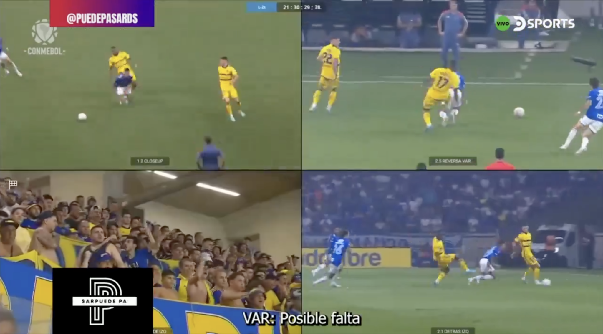🟥🇵🇪 Así se confirmó la tarjeta roja de Luis Advíncula en el duelo entre Cruzeiro y Boca por los octavos de final de la CONMEBOL #SudamericanaEnDSPORTS.