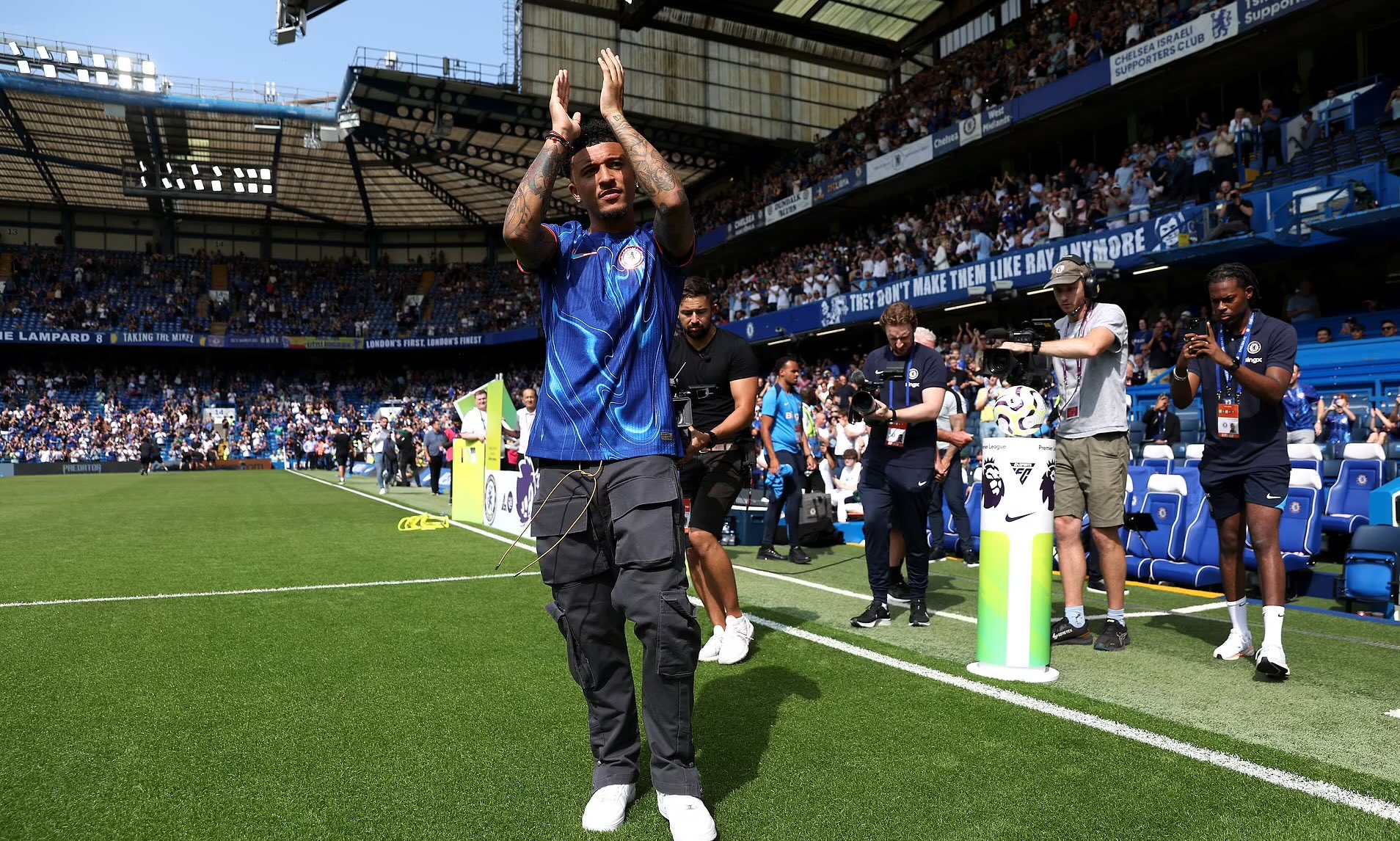 Jadon Sancho unveiled to the Chelsea fans at Stamford Bridge! 🔵 pic.twitter.com/mqFJNutwfx