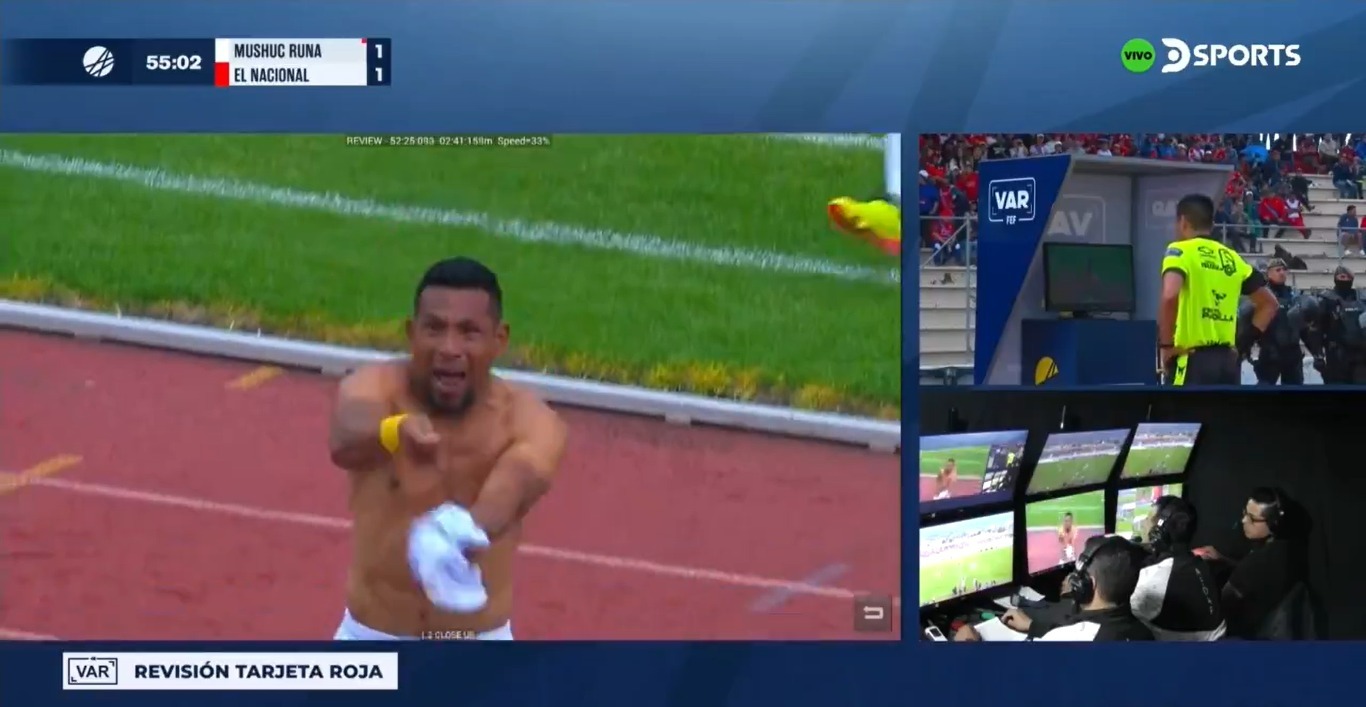 🟥 El Árbitro Anthony Díaz revisó el festejo polémico del jugador de Mushuc Runa y le mostró la tarjeta roja.#CopaEcuadorEnDSPORTS I COPA ECUADOR DIRECTV PLAYGREEN pic.twitter.com/o48Ino7Xty