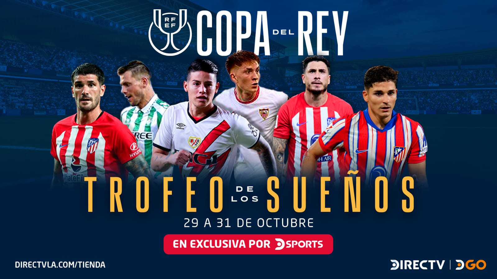 Los primeros cruces de la primera ronda se disputarán desde el 29 al 31 de octubre con la participación de clubes de primera división como Atlético de Madrid, Sevilla, Valencia y Rayo Vallecano. DSPORTS, la exclusiva señal deportiva, y DGO realizarán la cobertura más completa del único certamen que reúne a equipos de cinco categorías del fútbol español.