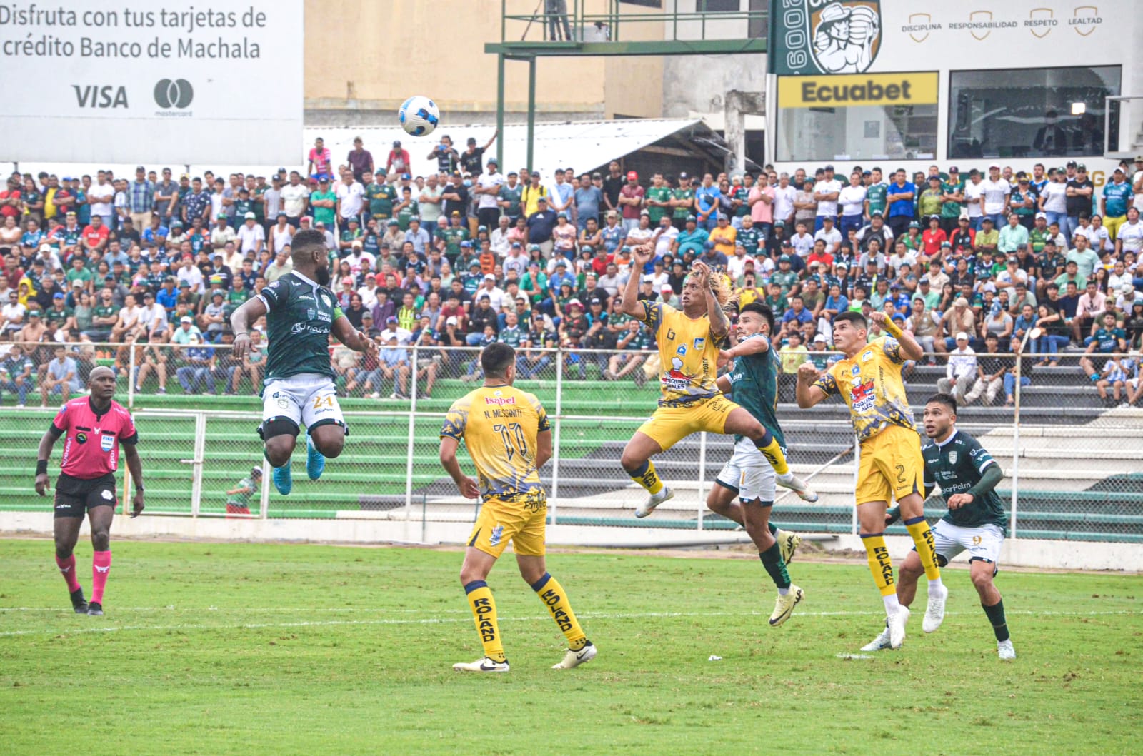 El delantero de @Orense_SC y un cabezazo que no quiso entrar.