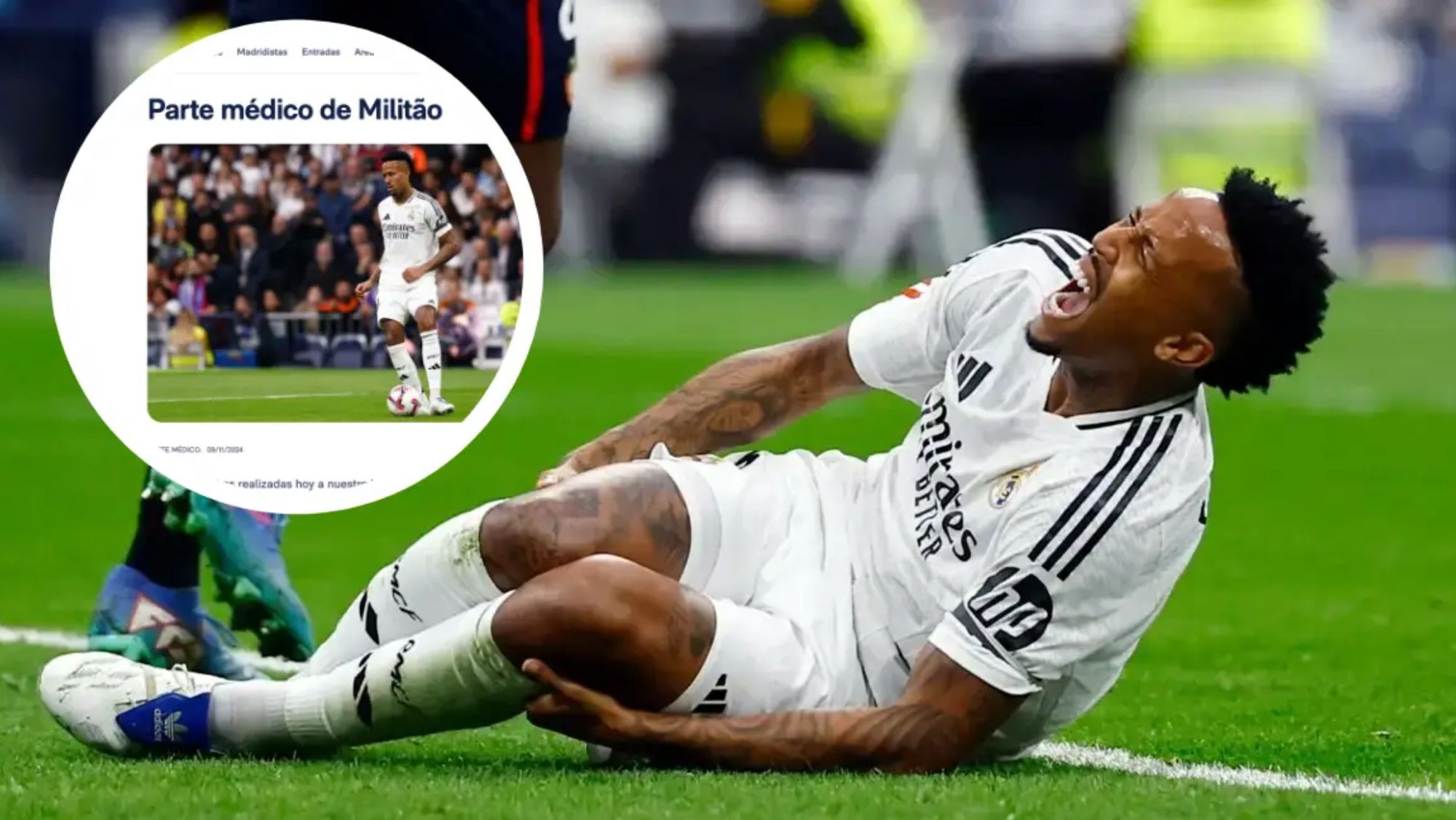 Malísima suerte la de Eder Militao que, después de helar al Bernabéu con su lesión en el duelo ante Osasuna, se ha confirmado que lo que sufre es una rotura completa del ligamento cruzado anterior con afectación de ambos meniscos en la pierna derecha, la articulación contraria de la que ya padeció hace poco más de un año.