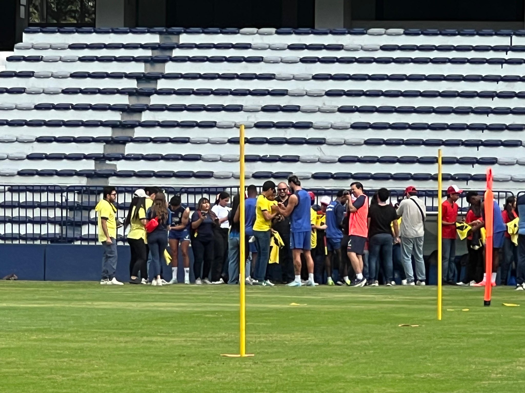 Antes de la práctica programada en el estadio Capwell, la mañana de este lunes, hubo una activación con hinchas dentro del escenario deportivo.
