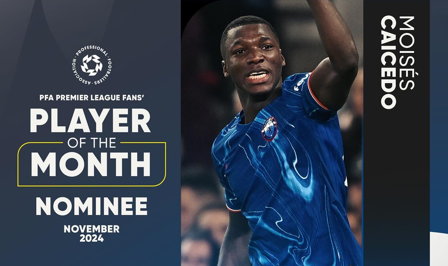 El mediocampista ecuatoriano, Moisés Caicedo, fue nominado por la PFA (Asociación de Futbolistas Profesionales de Inglaterra) al mejor jugador del mes de noviembre.