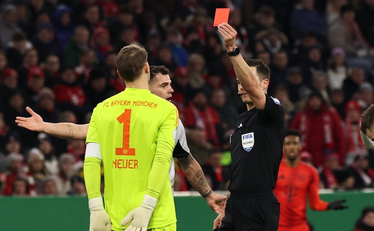 Manuel Neuer vivió un momento inédito para su carrera en el partido de octavos de final de la Copa de Alemania entre Bayern Munich y Bayer Leverkusen. El arquero fue expulsado a los 16 minutos de la primera parte luego de embestir a Jeremie Frimpong y evitar una ocasión manifiesta de gol.