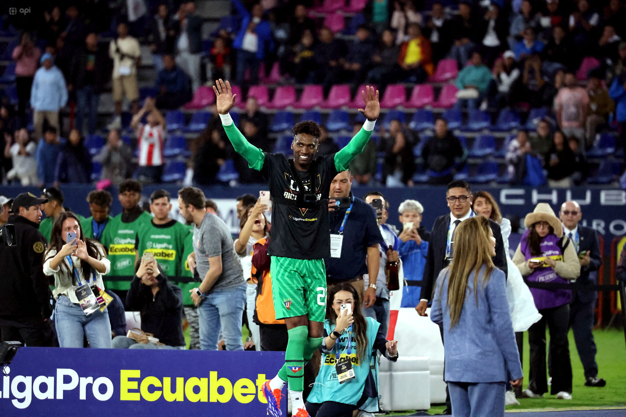 Alexander Domínguez, arquero de LDU, habló tras el nuevo título logrado por los albos por la LigaPro 2024 al destacar los objetivos conseguidos en su carrera lanzando un dardo: “Son nueve títulos acá, ojalá no vayan a ‘matarme’ como algunos ex futbolistas”