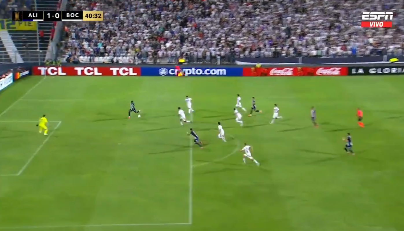 En el minuto 40 del primer tiempo, una brillante combinación entre dos jugadores bien conocidos en el fútbol ecuatoriano casi amplía la ventaja de Alianza Lima frente a Boca Juniors. Hernán Barcos filtró un pase preciso para Eryc Castillo, quien quedó mano a mano con el arquero Agustín Marchesín, generando una gran ocasión de gol.
