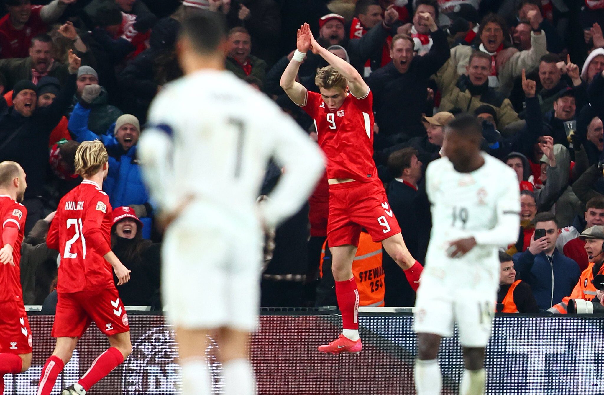 Rasmus Højlund se convirtió en el héroe de Dinamarca al anotar el gol decisivo en la victoria por 1-0 ante Portugal en la ida de los cuartos de final de la UEFA Nations League. El delantero del Manchester United, de 22 años, aprovechó un pase de Andreas Skov Olsen en el minuto 78 para batir al arquero Diogo Costa con un remate certero. Sin embargo, lo que capturó la atención de los aficionados no fue solo el gol, sino la celebración que Højlund eligió para el momento: el icónico “SIIIIIU” de Cristiano Ronaldo, realizado frente al mismísimo astro portugués, quien estaba en el campo.