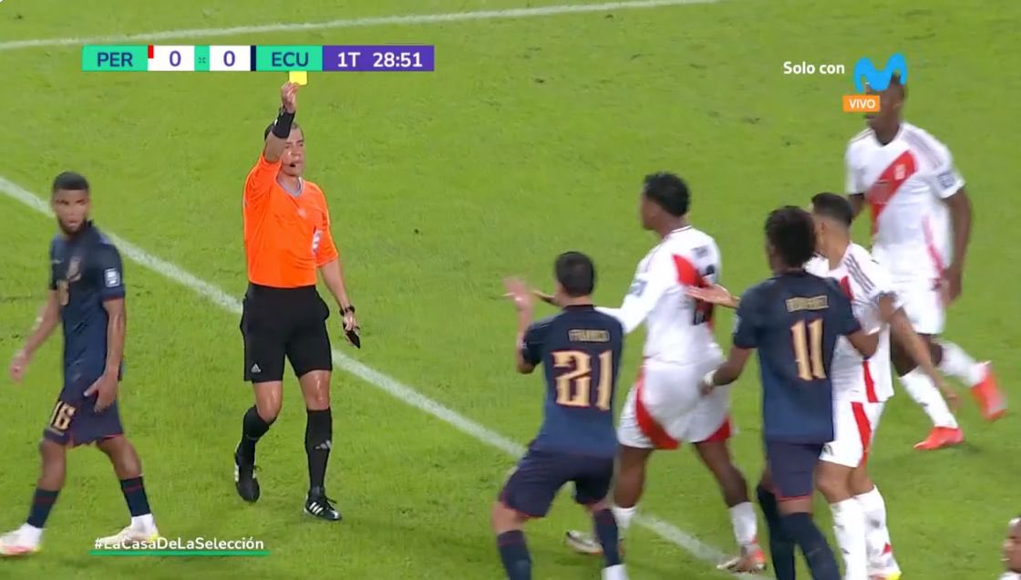 Alan Franco recibió una tarjeta amarilla en el partido entre Ecuador y Perú disputado en Lima, tras una fuerte entrada durante el encuentro. Con esta amonestación, el mediocampista ecuatoriano acumuló su segunda cartulina en las Eliminatorias Sudamericanas rumbo al Mundial 2026.