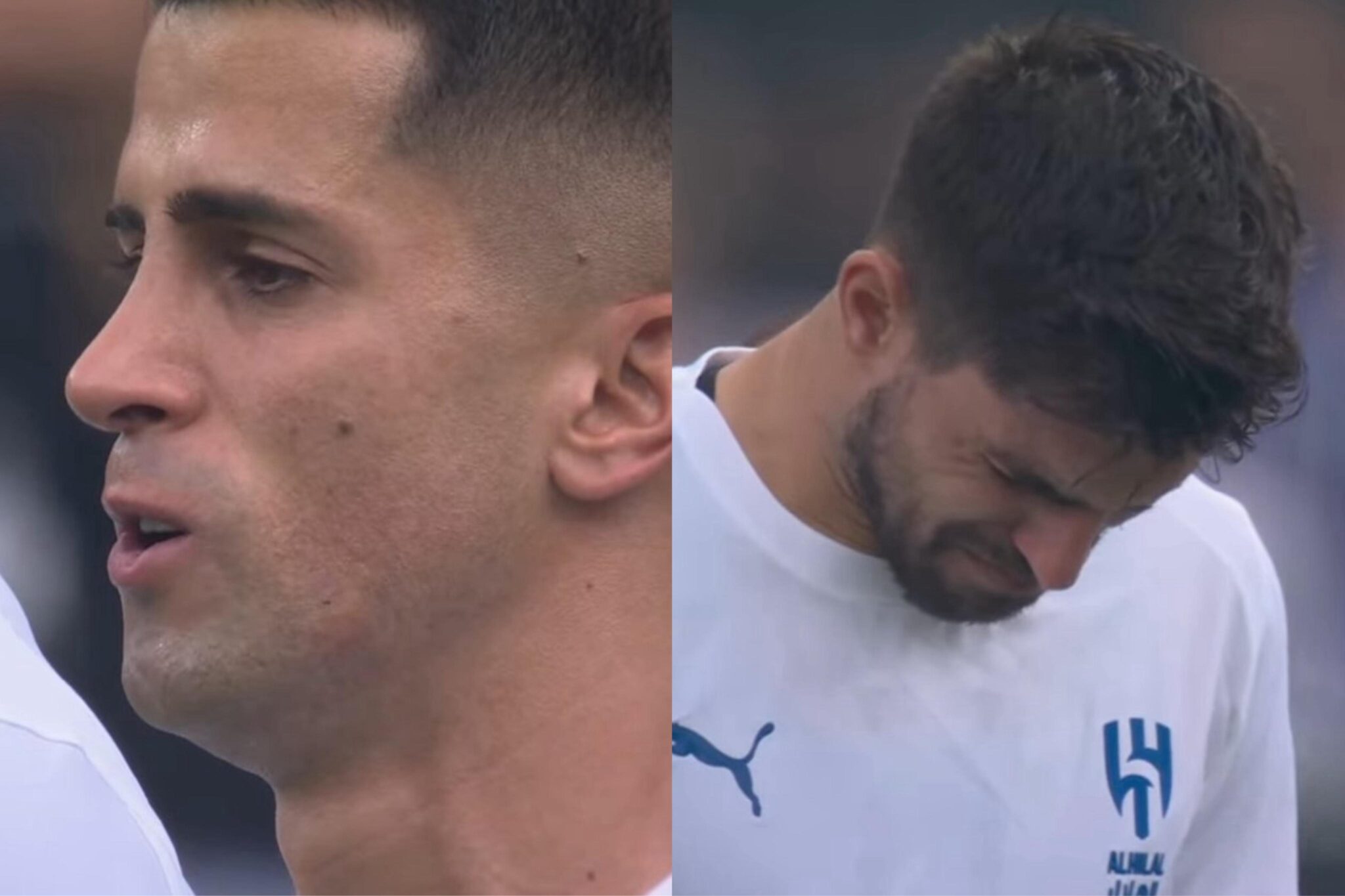 Ambos jugadores del Al Hilal, muy conmovidos en minuto de silencio por el fallecimiento de Diogo Jota y André Silva.