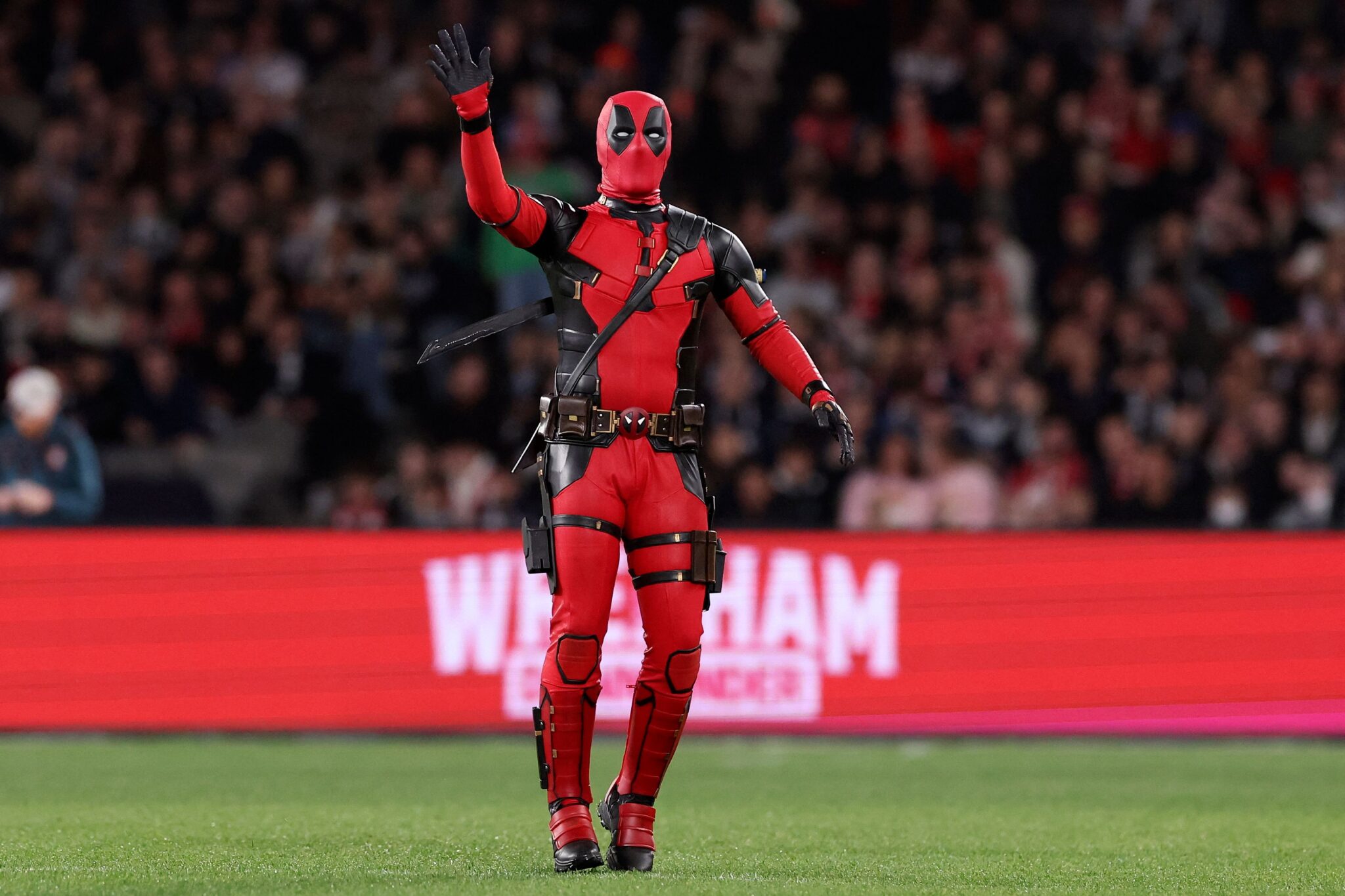 El fútbol y el cine volvieron a cruzarse de forma espectacular. En la antesala del partido amistoso entre el Melbourne Victory y el Wrexham AFC, el gran protagonista no fue un jugador… sino Deadpool. El popular antihéroe de Marvel apareció en el campo para animar al público y entregarle el balón al árbitro antes del pitazo inicial.