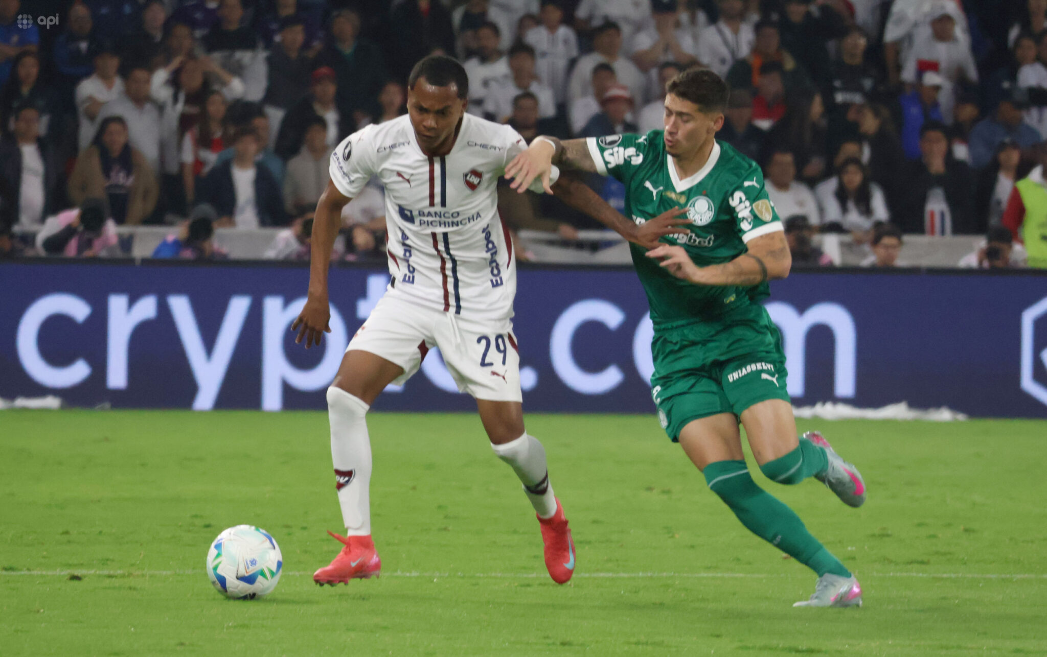 El volante de LDU Quito, Bryan Ramírez, recibió una tarjeta roja directa durante la semifinal de ida de la Copa Libertadores, partido en el que los albos se impusieron con un contundente 3-0.