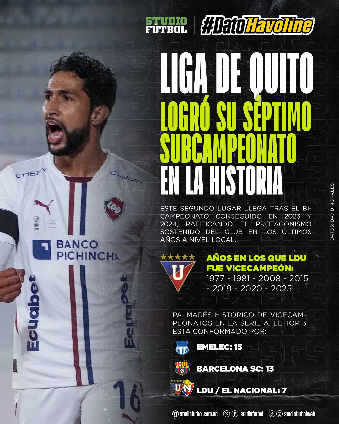 Años en los que LDU fue vicecampeón (datos vía David Morales):