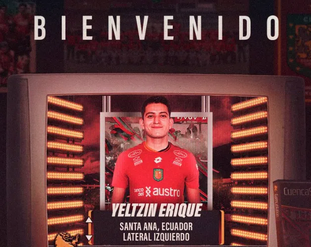 El Club Deportivo Cuenca anunció este jueves la incorporación del lateral izquierdo Yeltzin Erique como nuevo refuerzo para la campaña que se avecina en la LigaPro Serie A.