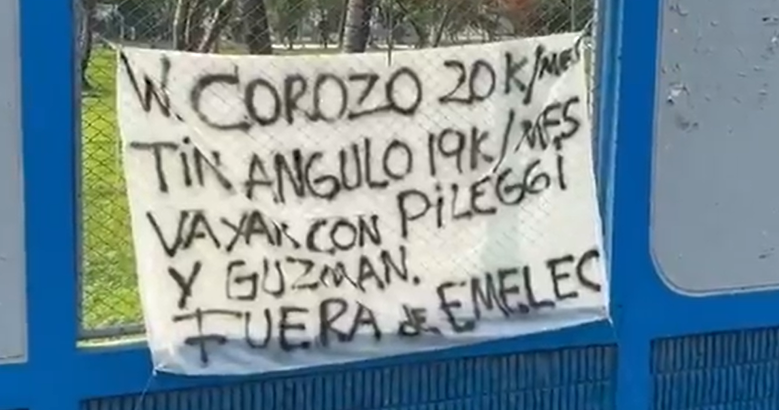 El mensaje del trapo fue contundente y señaló directamente a los futbolistas involucrados Washington Corozo y José Angulo, con la frase: “vayan con Pileggi y Guzmán… fuera de Emelec”, en alusión a José Pileggi y Jorge Guzmán, expresidentes del club, a quienes parte de la hinchada responsabiliza por la crisis económica actual.