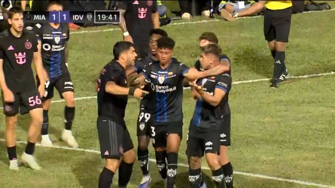 Luis Suárez salió en defensa de sus compañeros y protagonizó una discusión con el ecuatoriano Jordy Alcívar en medio del picante duelo. El uruguayo incluso se dirigió al árbitro señalando al volante de IDV y lanzó un contundente “está loco”, en una escena que reflejó la tensión del compromiso.