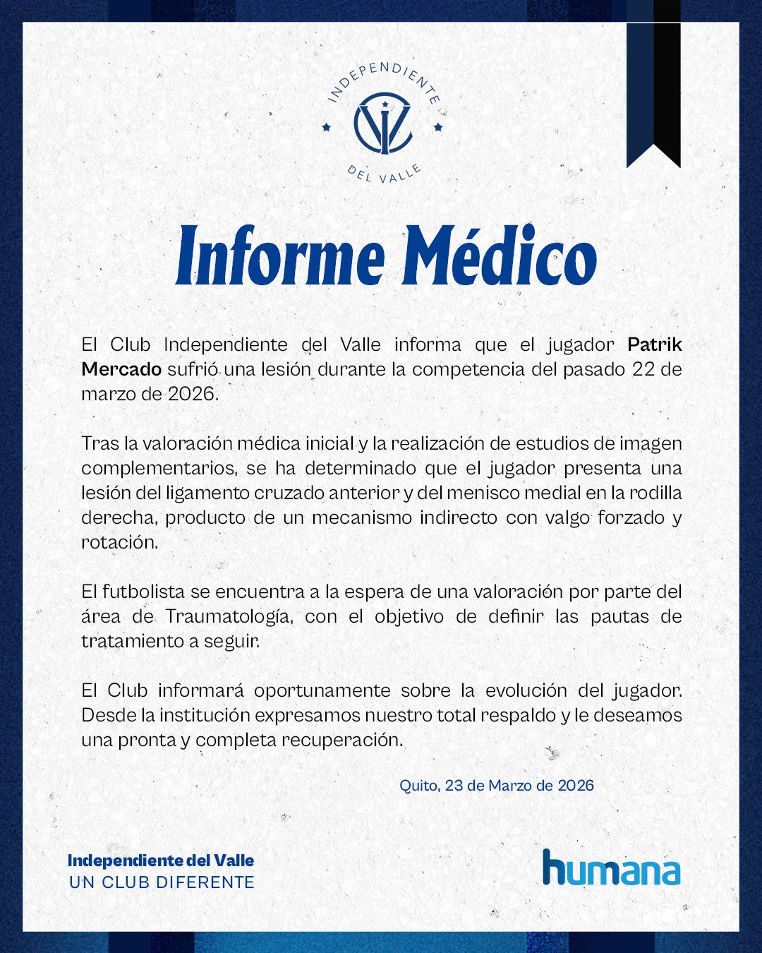 Noticia Banco Guayaquil // Se perderá el Mundial: IDV y el parte médico de la lesión de Patrik Mercado