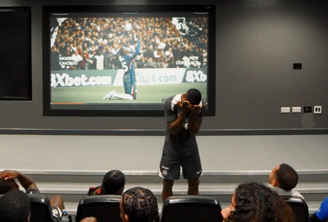 🥹🇪🇨💙 El emotivo homenaje del Chelsea a Moisés Caicedo tras su renovación de contrato.